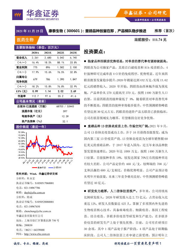 【华鑫证券】【20211125】康泰生物:重磅品种放量在即,产品梯队稳步推进-29页