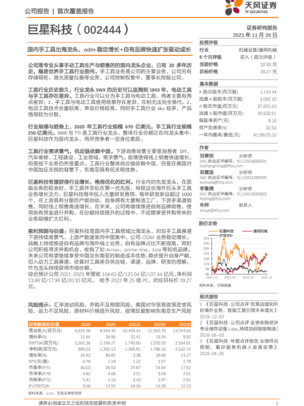 【天风证券】【20211126】国内手工具出海龙头,odm稳定增长+自有品牌快速扩张驱动成长-33页