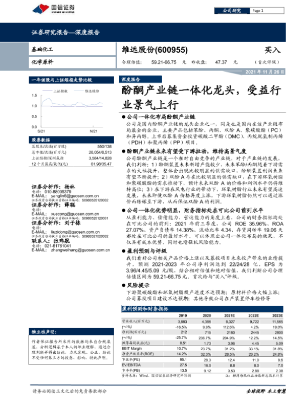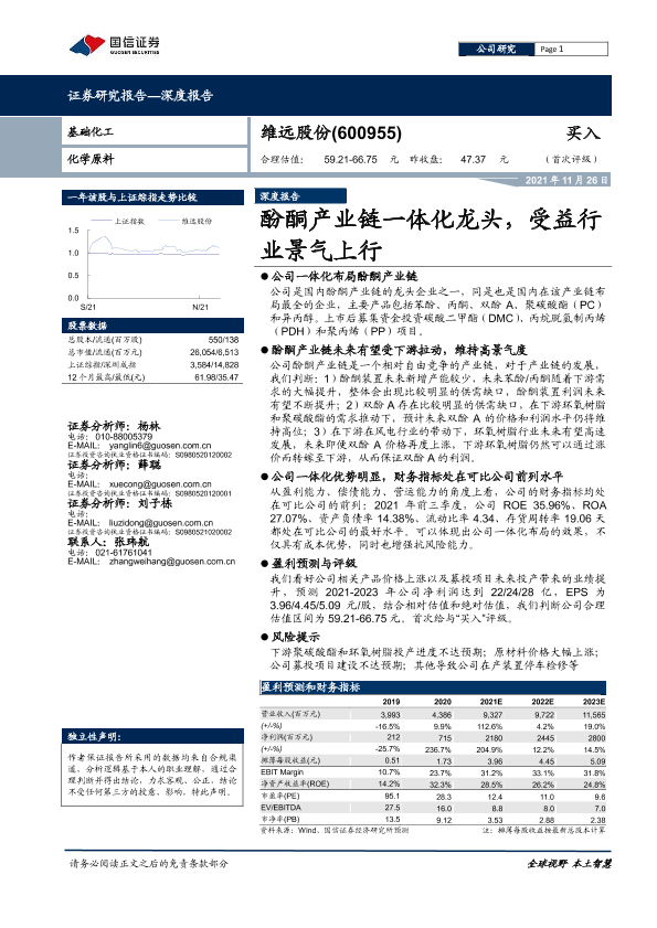 【国信证券】【20211126】维远股份-酚酮产业链一体化龙头,受益行业景气上行-35页