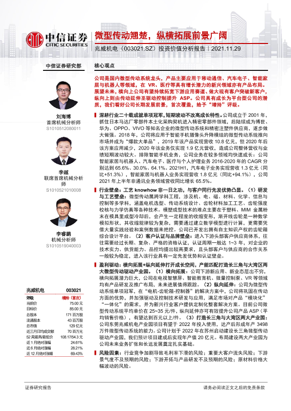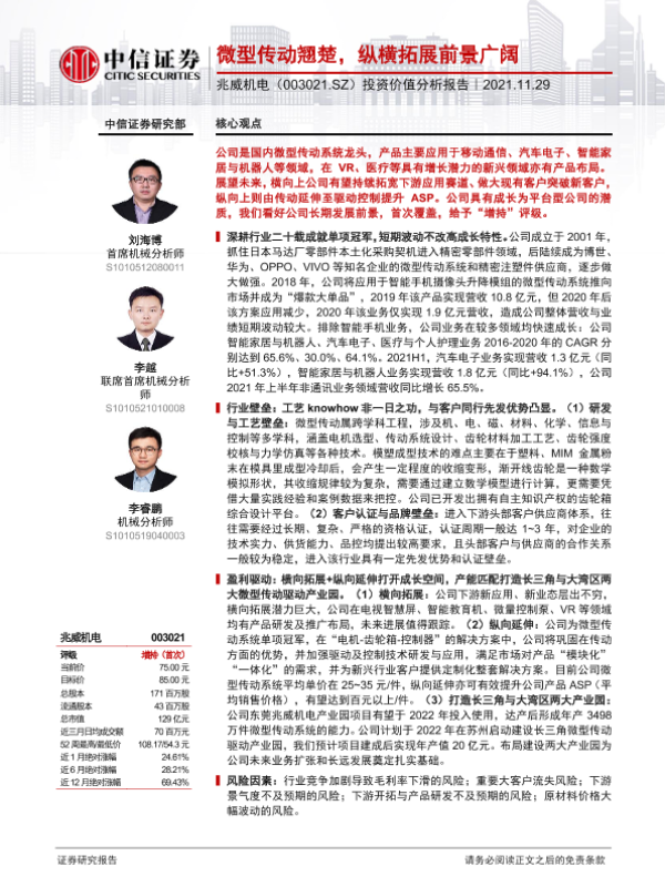 【中信证券】【20211129】20211129-中信证券-兆威机电-003021.SZ-投资价值分析报告:微型传动翘楚,纵横拓展前景广阔-28页