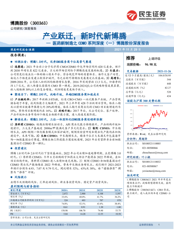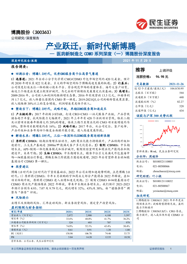 【民生证券】【20211129】产业跃迁,新时代新博腾——医药新制造之CDMO系列深度(一)博腾股份深度报告-30页