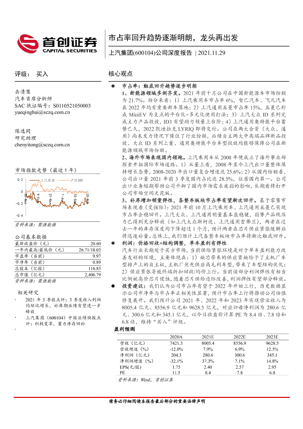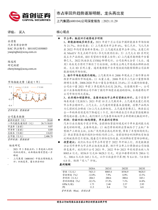 【首创证券】【20211129】20211129-首创证券-上汽集团-600104.SH-公司深度报告:市占率回升趋势逐渐明朗,龙头再出发-28页