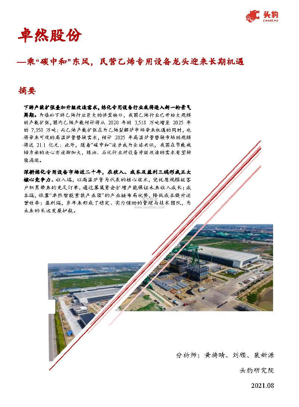 【头豹研究院】【2021】乘“碳中和”东风,民营乙烯专用设备龙头迎来长期机遇-38页