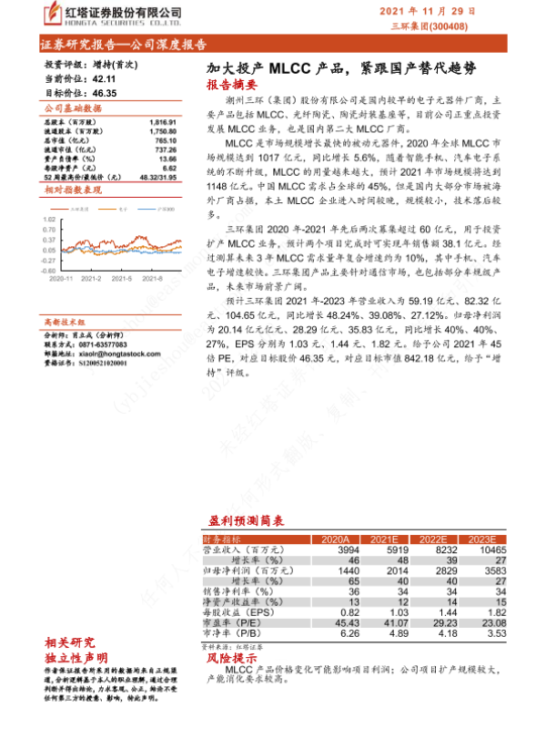 【红塔证券】【20211129】加大投产MLCC产品,紧跟国产替代趋势-32页