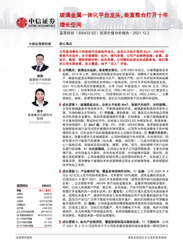 【中信证券】【20211202】20211202-中信证券-蓝思科技-300433.SZ-投资价值分析报告:玻璃金属一体化平台龙头,垂直整合打开十年增长空间-43页