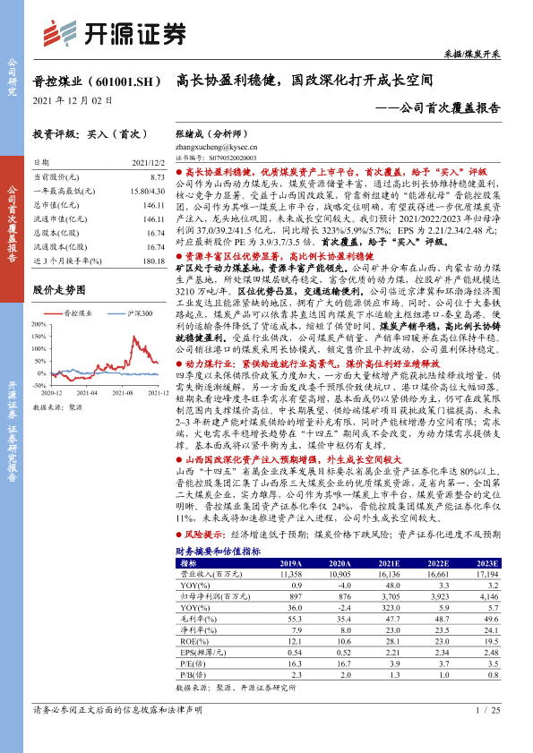 【开源证券】【20211202】20211202-开源证券-晋控煤业-601001.SH-公司首次覆盖报告:高长协盈利稳健,国改深化打开成长空间-25页