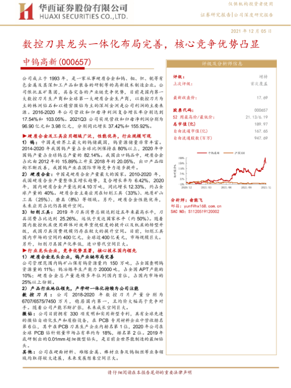 【华西证券】【20211205】数控刀具龙头一体化布局完善,核心竞争优势凸显-29页