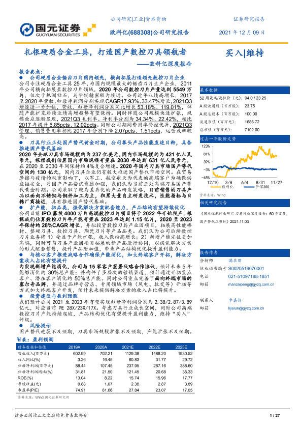 【国元证券】【20211209】欧科亿深度报告:扎根硬质合金工具,打造国产数控刀具领航者-27页