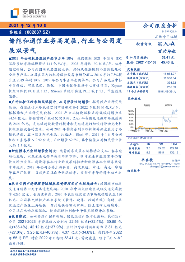 储能业务 新能源车用空调 机房温控 轨交空调 通信业务