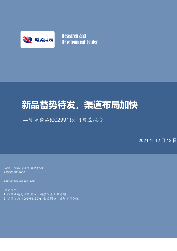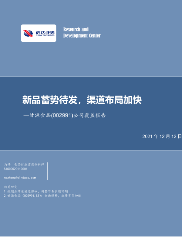 【信达证券】【20211212】20211212-信达证券-甘源食品-002991.SZ-公司覆盖报告:新品蓄势待发,渠道布局加快-22页