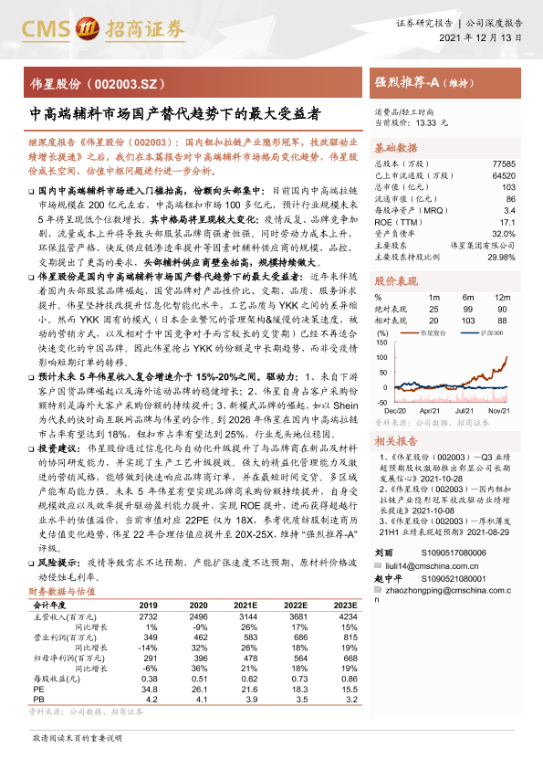 【海通证券】【20211213】伟星股份-002003.SZ-中高端辅料市场国产替代趋势下的最大受益者-8页