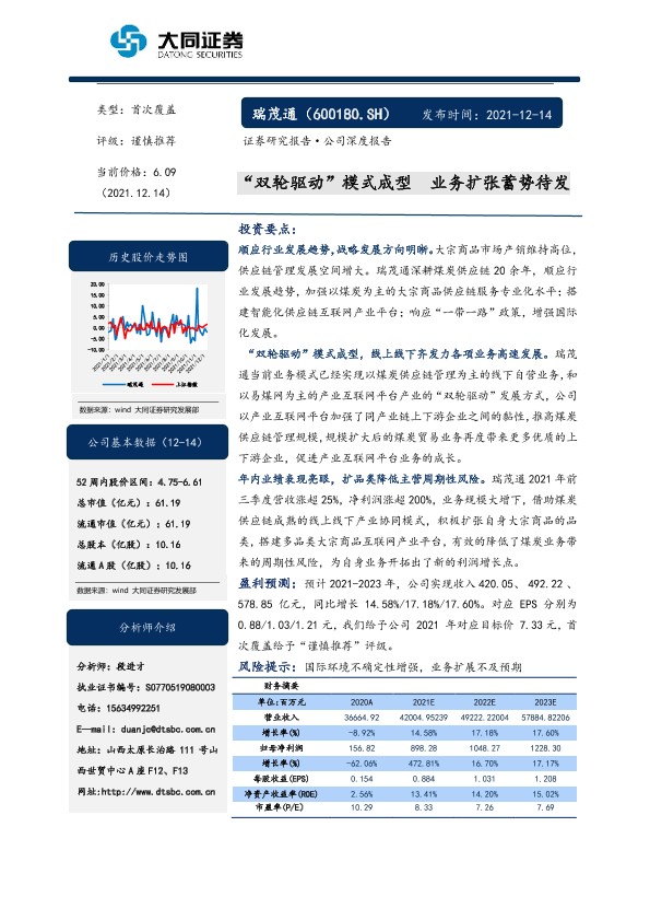 业务扩张 双轮驱动 大宗商品 煤炭供应链 瑞茂通