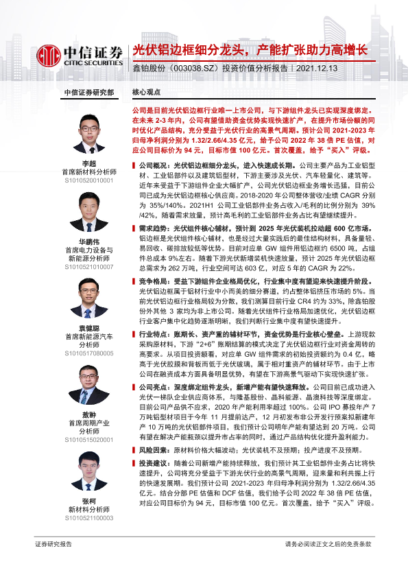 【中信证券】【20211213】20211213-中信证券-鑫铂股份-003038.SZ-投资价值分析报告:光伏铝边框细分龙头,产能扩张助力高增长-25页