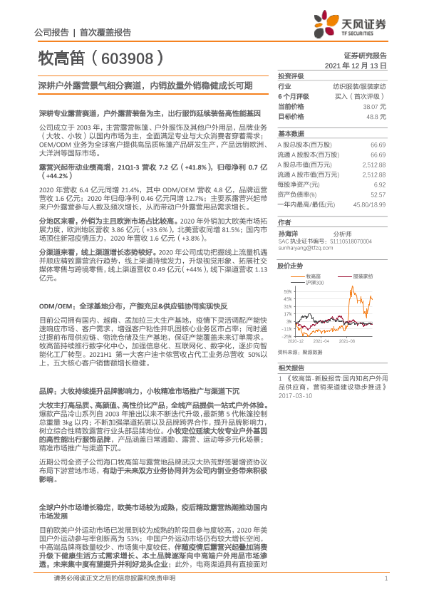 【天风证券】【20211213】牧高笛-603908.SH-深耕户外露营景气细分赛道,内销放量外销稳健成长可期-41页