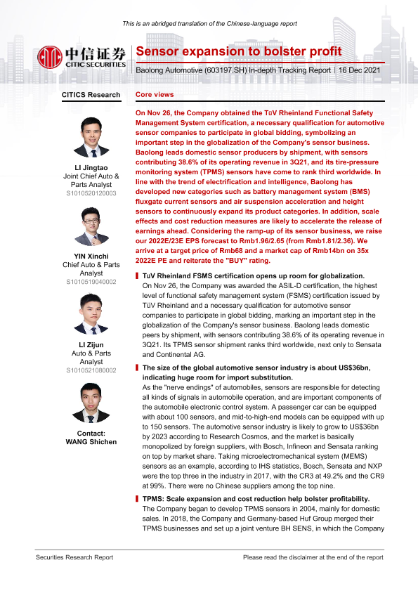 【CITICS Research】【20211216】券-保隆科技-603197.SH-In-depth Tracking Report Sensor expansion to bolster profit-5页