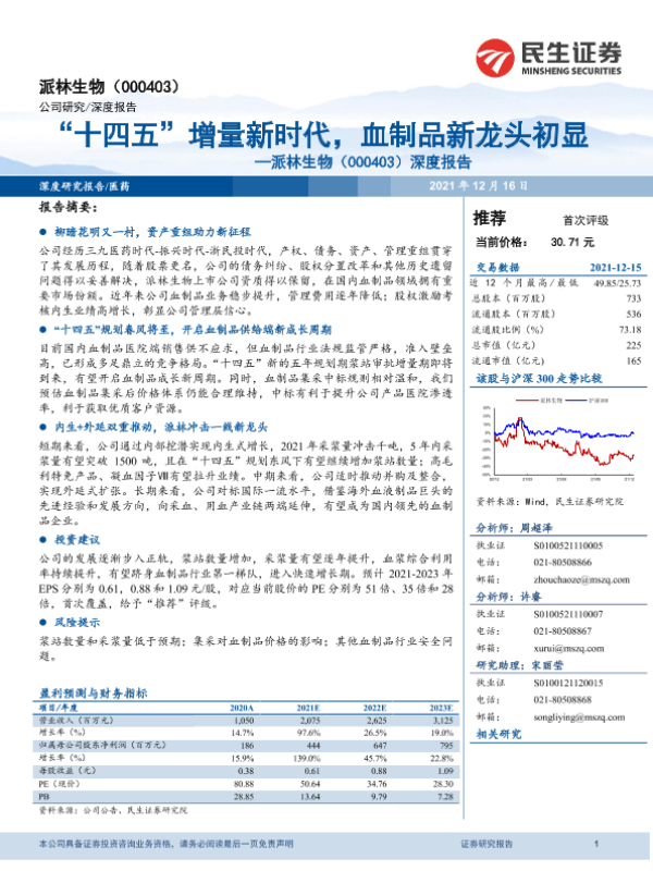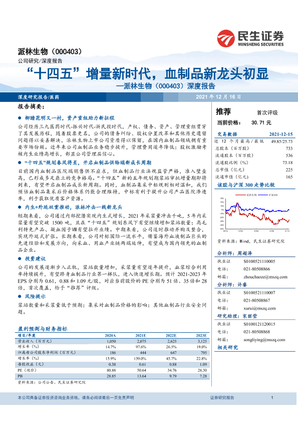 【民生证券】【20211216】20211216-民生证券-派林生物-000403.SZ-深度报告:“十四五”增量新时代,血制品新龙头初显-31页