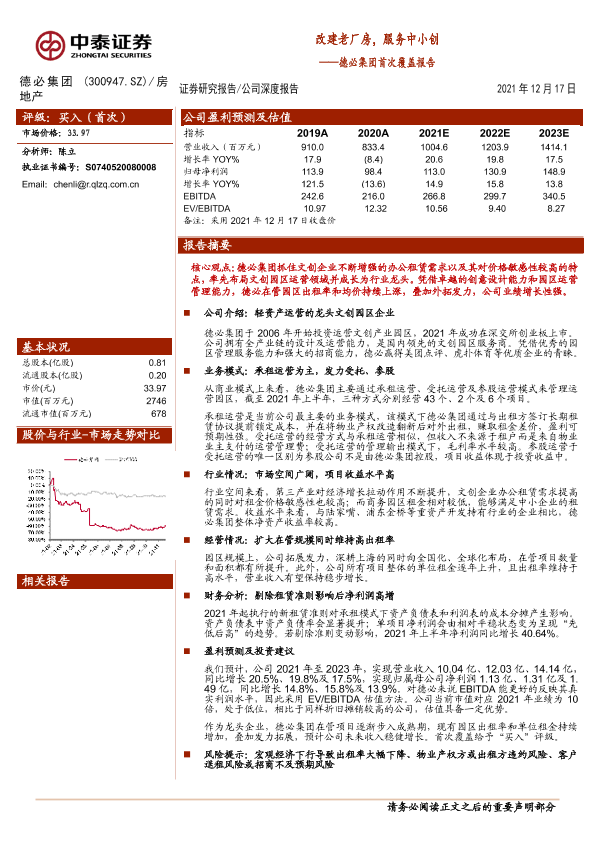 【中泰证券】【20211217】德必集团首次覆盖报告:改建老厂房,服务中小创-25页