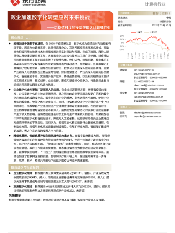 【东方证券】【20220513】后疫情时代的投资逻辑之计算机行业:政企加速数字化转型应对未来挑战-30页