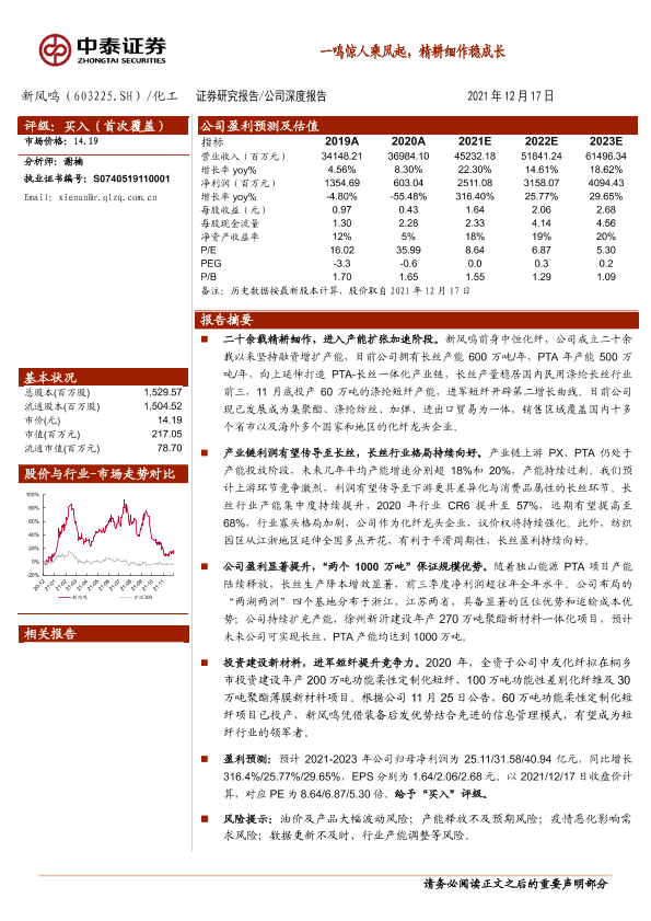 PTA 产能扩张 化纤行业 新凤鸣 涤纶长丝