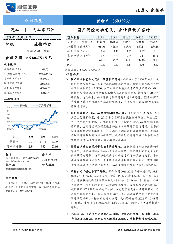 伯特利 智能汽车 汽车零部件 线控制动系统 轻量化