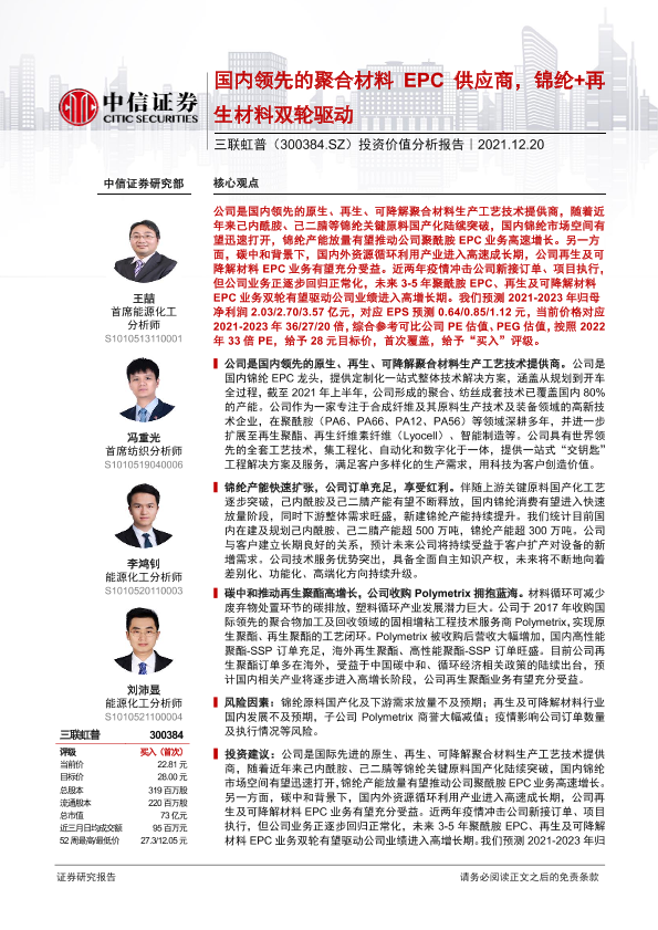 【中信证券】【20211220】国内领先的聚合材料EPC供应商,锦纶+再生材料双轮驱动-28页