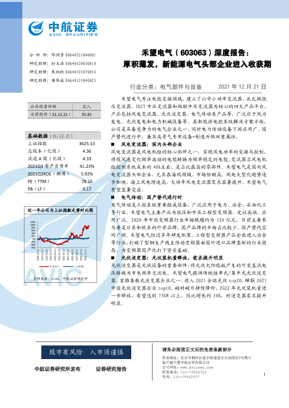 【中航证券】【20211221】禾望电气深度报告:厚积薄发,新能源电气头部企业进入收获期-21页