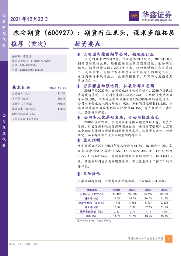 【华鑫证券】【20211222】永安期货:期货行业龙头,谋求多维拓展-20页