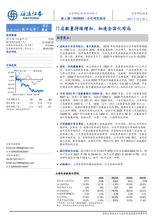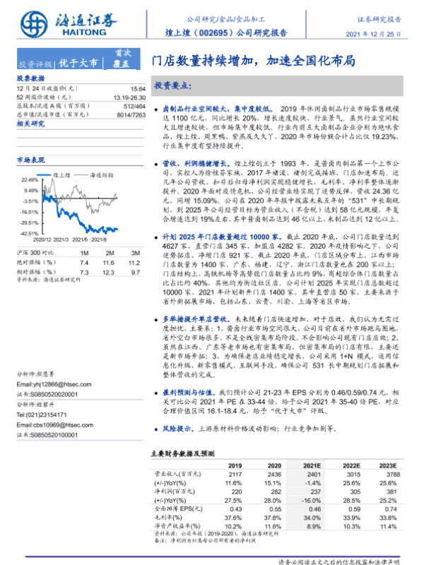 【海通证券】【20211225】煌上煌-002695.SZ-门店数量持续增加,加速全国化布局-20页