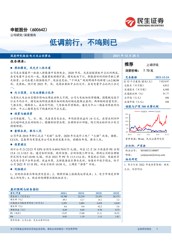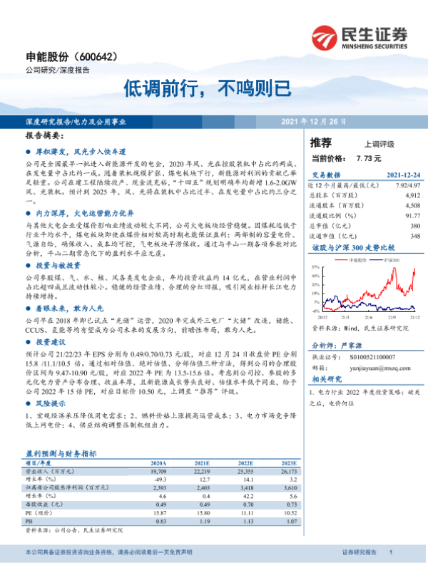 【民生证券】【20211226】申能股份(600642)低调前行,不鸣则已-25页