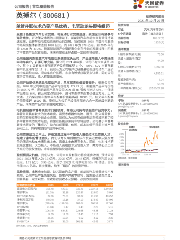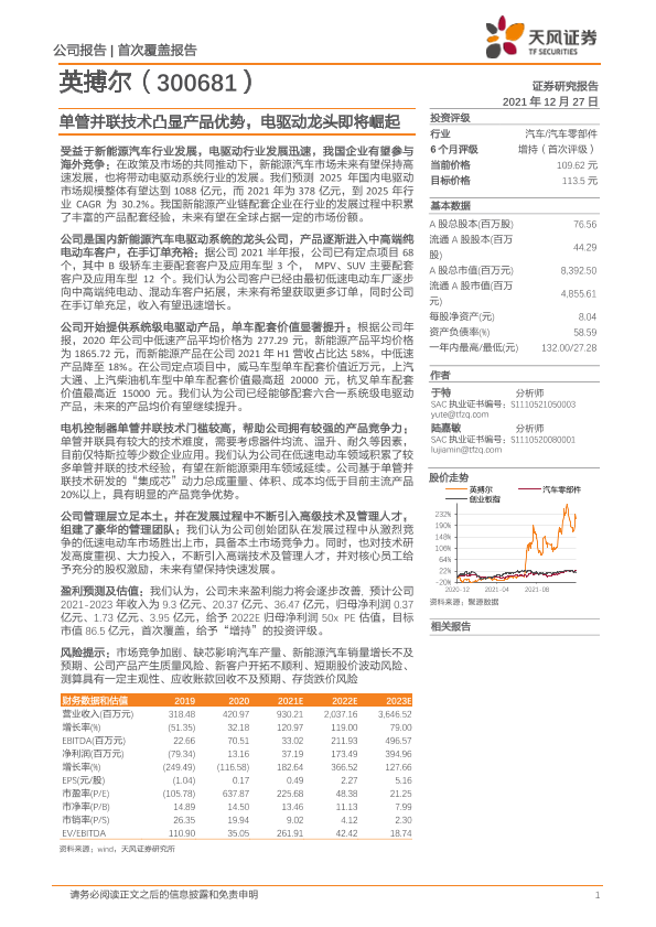 【天风证券】【20211227】单管并联技术凸显产品优势,电驱动龙头即将崛起-22页