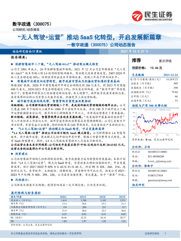 【民生证券】【20211227】“无人驾驶+运营”推动SaaS化转型,开启发展新篇章-23页