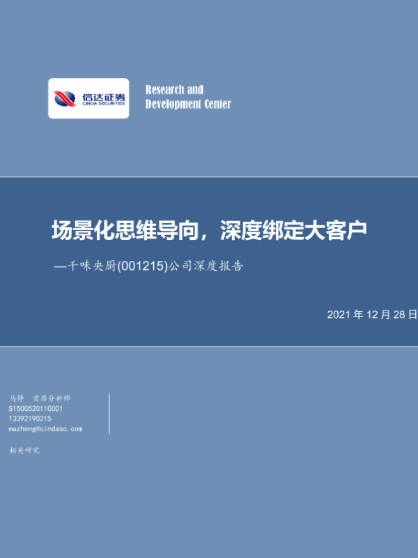 【信达证券】【20211228】20211228-信达证券-千味央厨-001215.SZ-公司深度报告:场景化思维导向,深度绑定大客户-22页
