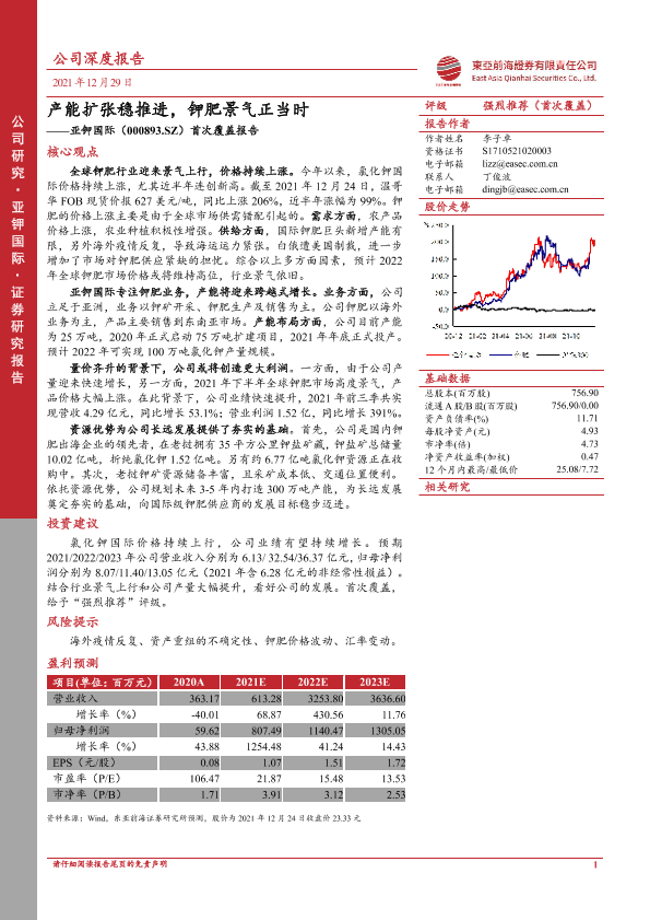 【东亚前海证券】【20211229】20211229-东亚前海证券-亚钾国际-000893.SZ-首次覆盖报告:产能扩张稳推进,钾肥景气正当时-23页