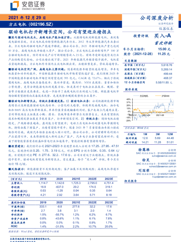 【安信证券】【20211229】驱动电机打开新增长空间,公司有望迎业绩拐点-31页