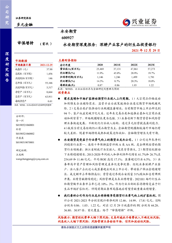 【兴业证券】【20211229】永安期货深度报告:深耕产业客户的衍生品投资银行-27页