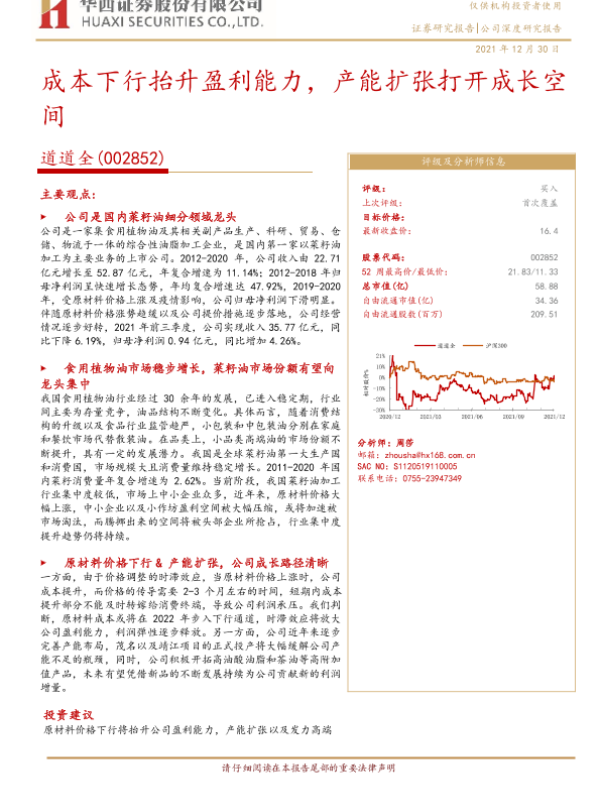 【华西证券】【20211230】成本下行抬升盈利能力,产能扩张打开成长空间-22页