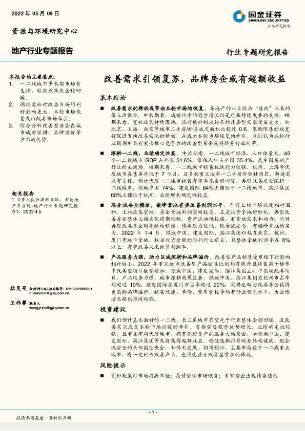 【国金证券】【20220509】地产行业专题报告:改善需求引领复苏,品牌房企或有超额收益-26页