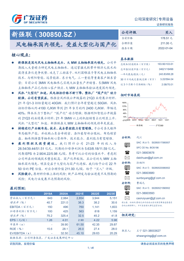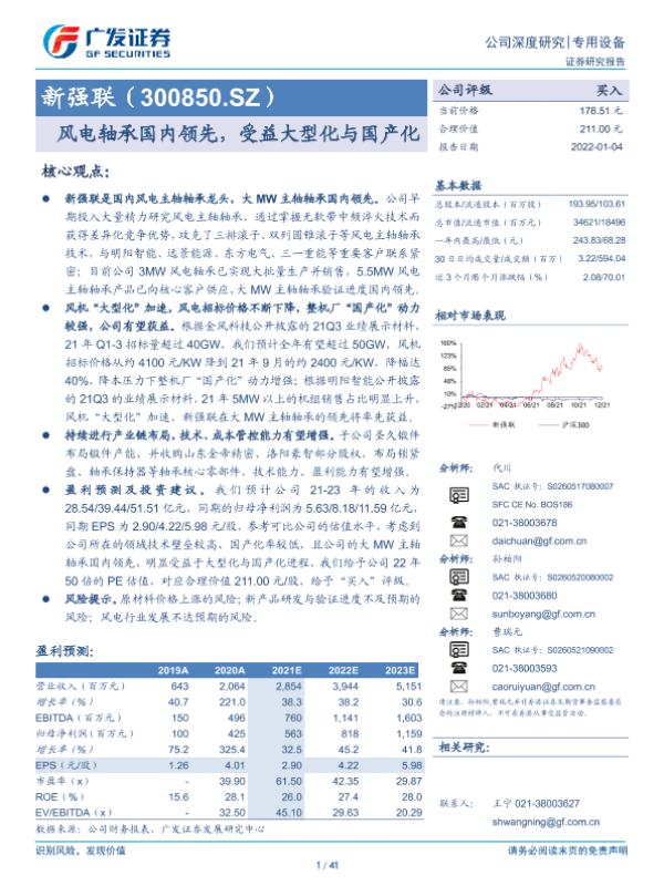 【广发证券】【20220104】新强联(300850.SZ):风电轴承国内领先,受益大型化与国产化-41页