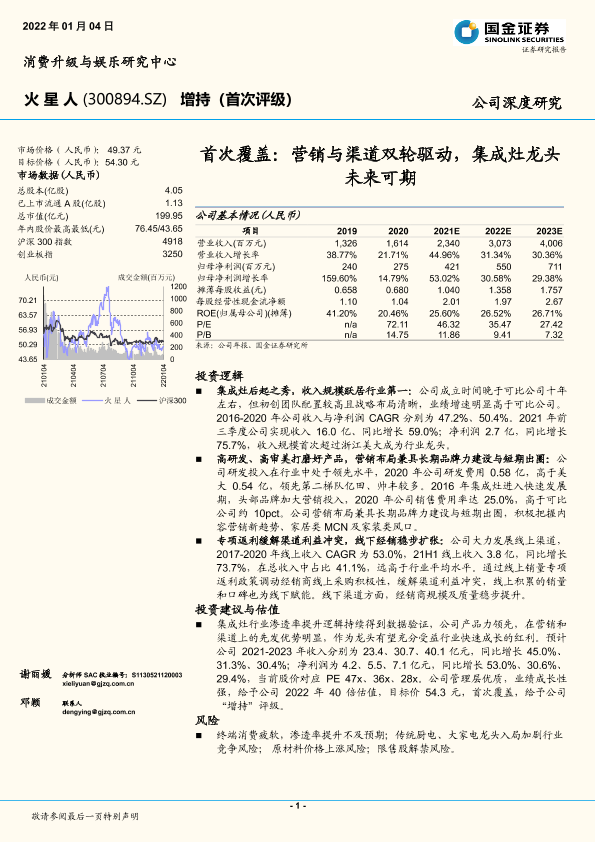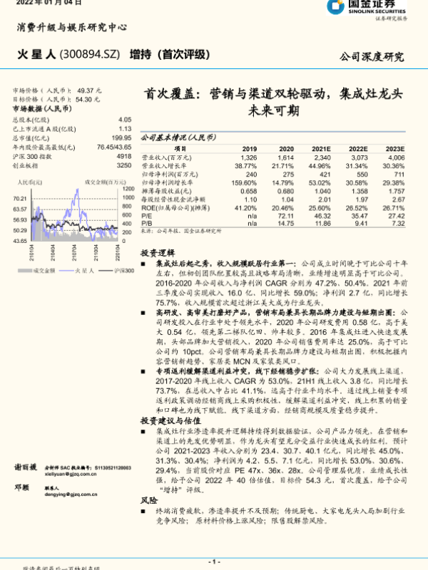 【国金证券】【20220104】20220104-国金证券-火星人-300894.SZ-首次覆盖:营销与渠道双轮驱动,集成灶龙头未来可期-20页