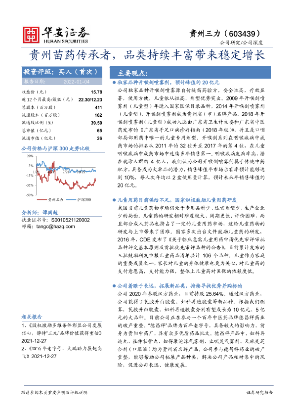 【华安证券】【20220104】贵州苗药传承者,品类持续丰富带来稳定增长-30页