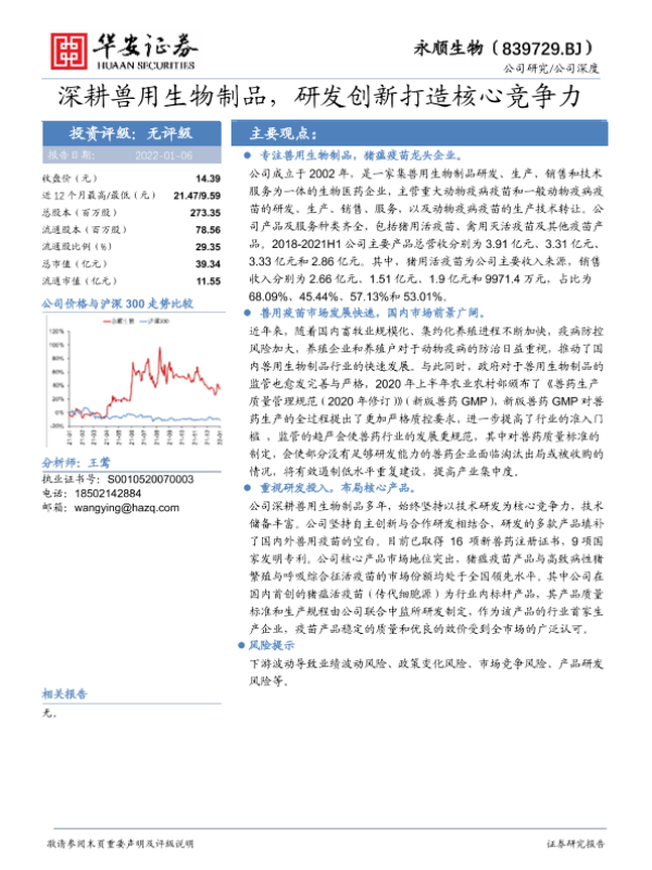 【华安证券】【20220106】深耕兽用生物制品,研发创新打造核心竞争力-21页
