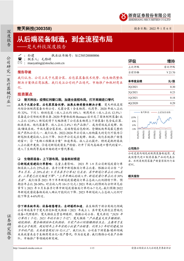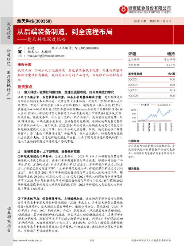 【浙商证券】【20220106】楚天科技深度报告:从后端装备制造,到全流程布局-15页