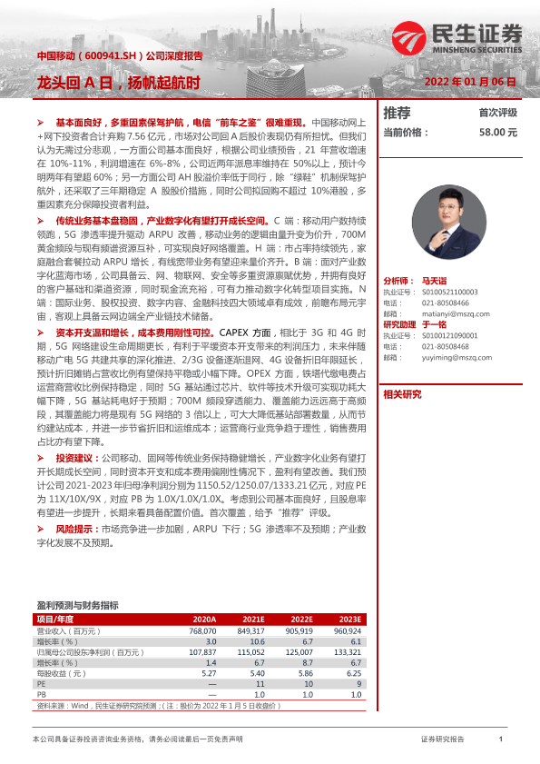 【民生证券】【20220106】20220106-民生证券-中国移动-600941.SH-公司深度报告:龙头回A日,扬帆起航时-43页