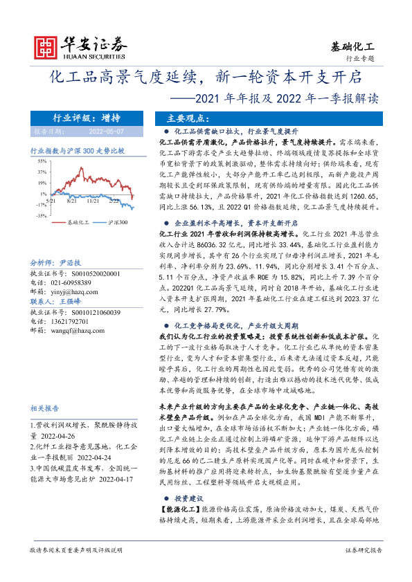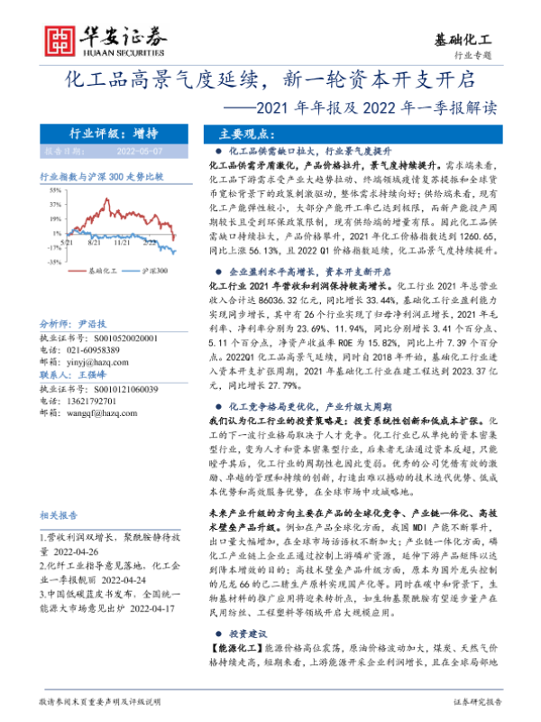 【华安证券】【20220507】基础化工行业专题:2021年年报及2022年一季报解读,化工品高景气度延续,新一轮资本开支开启-34页