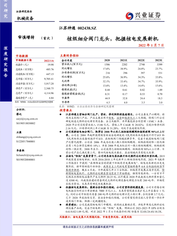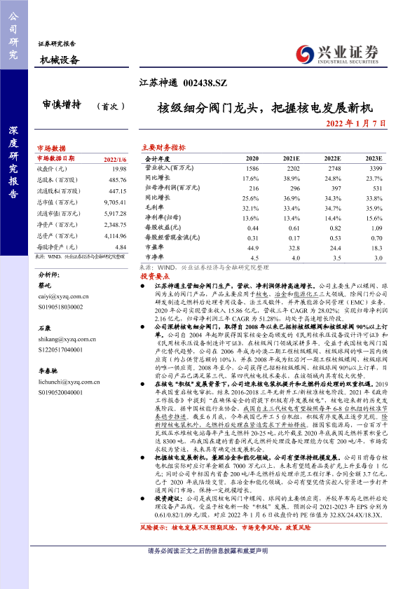【兴业证券】【20220107】核级细分阀门龙头,把握核电发展新机-25页