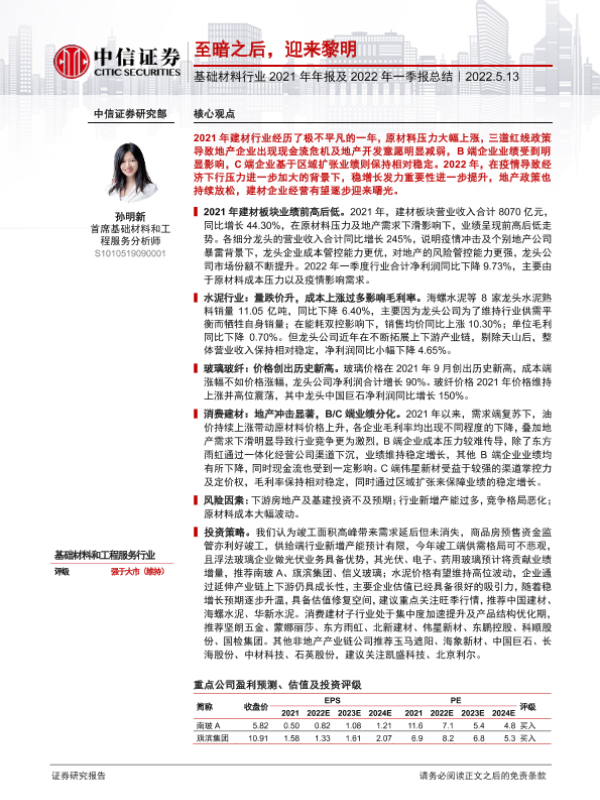 【中信证券】【20220513】基础材料行业2021年年报及2022年一季报总结:至暗之后,迎来黎明-18页