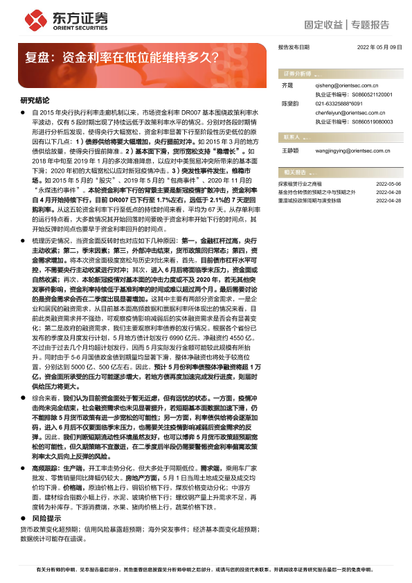 【东方证券】【20220509】复盘:资金利率在低位能维持多久?-21页