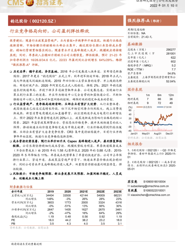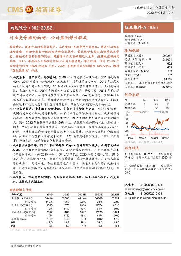 快递行业 成本管控 盈利预测 行业竞争 韵达股份