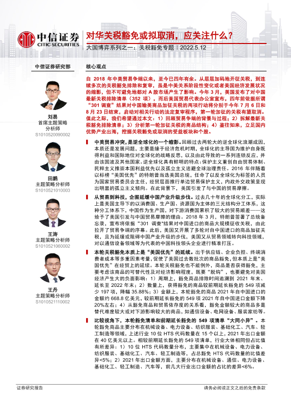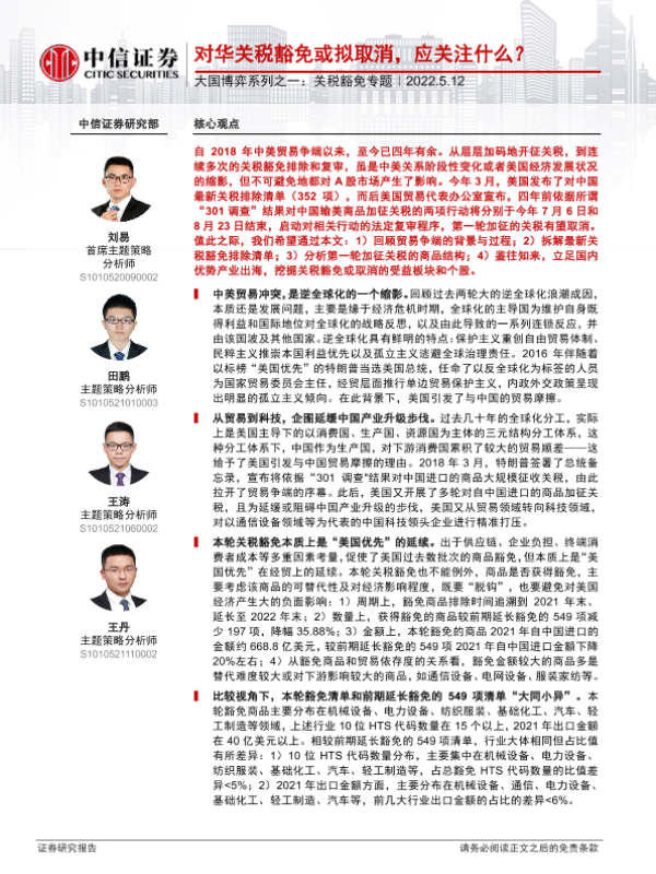 【中信证券】【20220512】大国博弈系列之一:关税豁免专题,对华关税豁免或拟取消,应关注什么?-21页