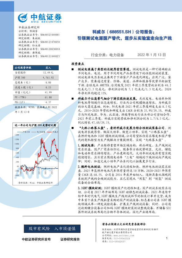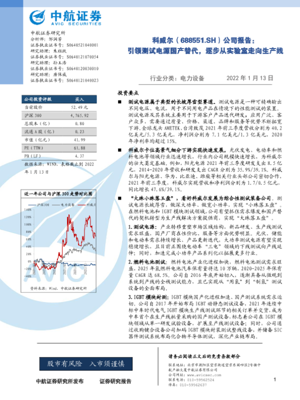 【中航证券】【20220113】科威尔:引领测试电源国产替代,逐步从实验室走向生产线-23页
